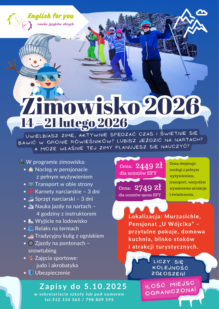 ” Od kilkunastu lat szkoła English For You zajmuje się organizowaniem kolonii dla dzieci i młodzieży. Zapewniamy podział na grupy wiekowe. Program jest dostosowany do poszczególnych przedziałów wiekowych dzieci i młodzieży.