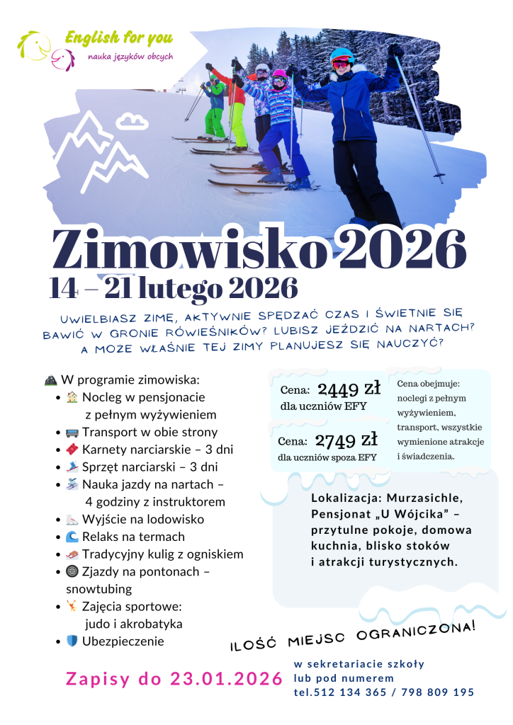 ” Od kilkunastu lat szkoła English For You zajmuje się organizowaniem kolonii dla dzieci i młodzieży. Zapewniamy podział na grupy wiekowe. Program jest dostosowany do poszczególnych przedziałów wiekowych dzieci i młodzieży.
